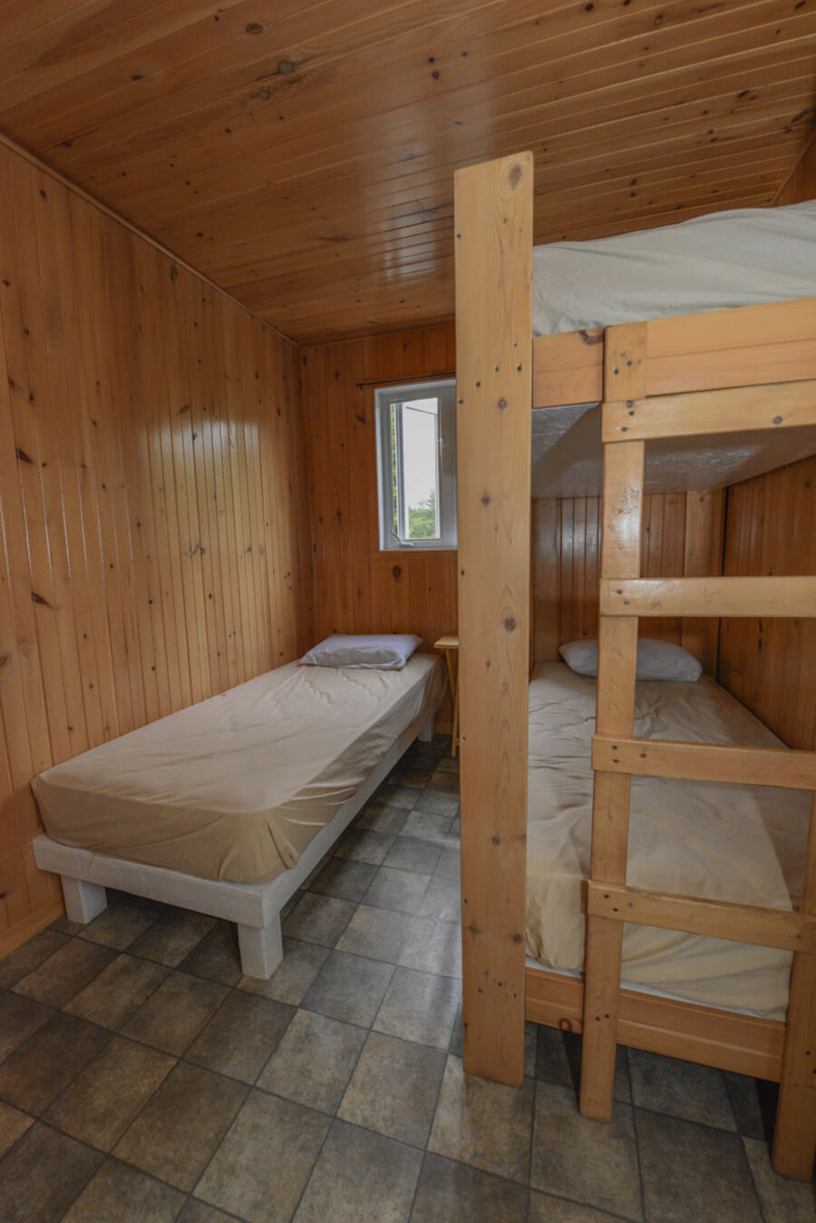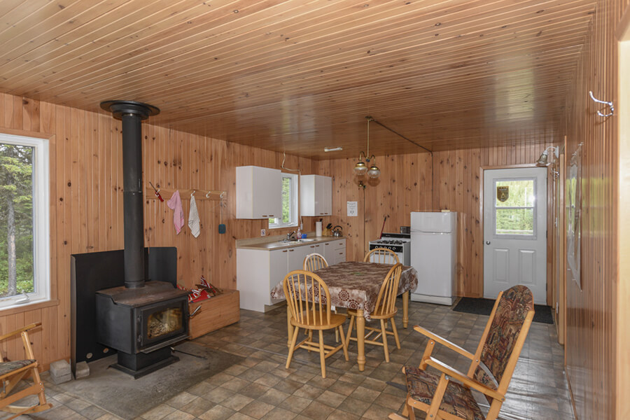 Pour les forfaits de chasse, pêche et villégiature, l’hébergement s’effectue dans l’un de nos chalets nouvellement construits (1999 à 2002 ). Les chalets de la pourvoirie (classifies 4 étoiles par la FPQ) sont entièrement équipés: